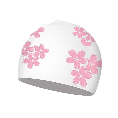 Bonnet de bain en silicone pour femme - Motif fleurs de pêche - Antidérapant - Imperméable - Accessoire de natation
