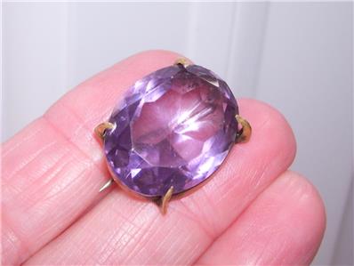 This gorgeous brooch is made from Gold (not hallmarked so assumed rolled gold or similar) and is set with an oval facet cut Amethyst. A very pretty piece and ready to wear. An ideal gift – don’t miss out!