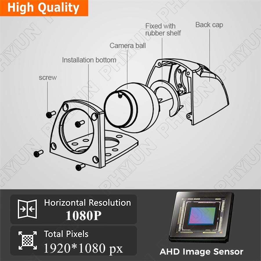 AHD Vehicle backup camera will give you a perfectly clear, high definition image for perfect results. It has bright colors and HD quality 1920x1080 pixels. Built-in IR-CUT, Camera has 5 infra-red lights surrounding the camera body to guarantee great vision at night.