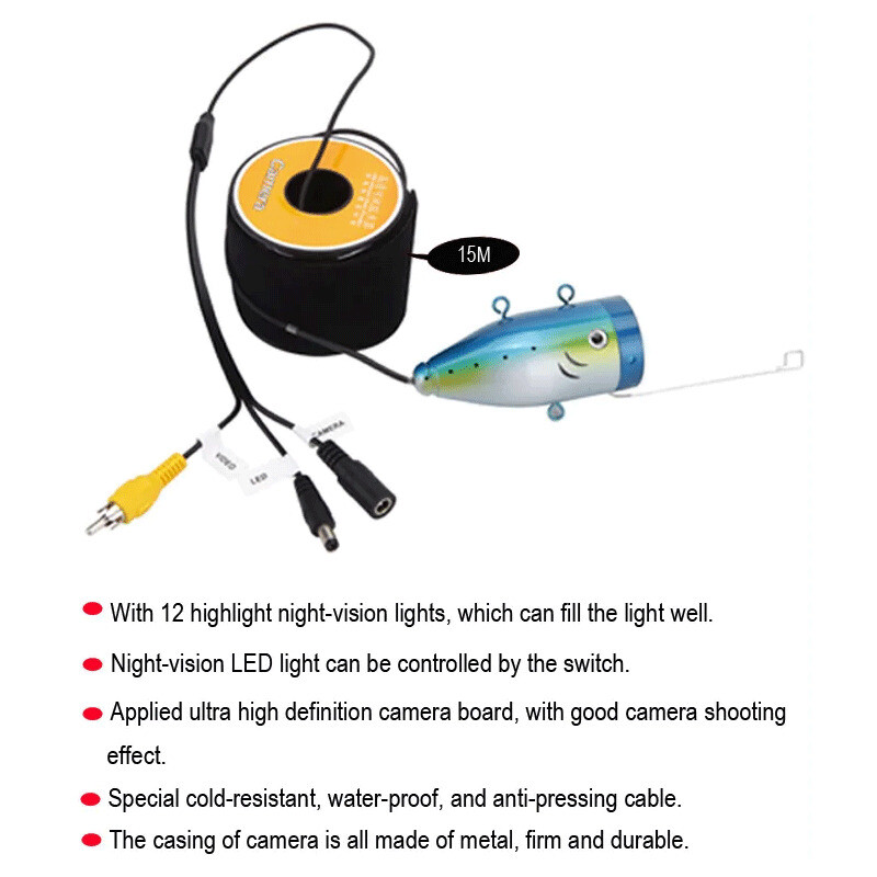 - Fish model design, waterproof and durable aluminium alloy material on the camera body.