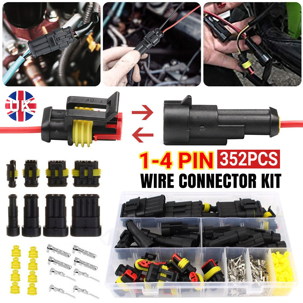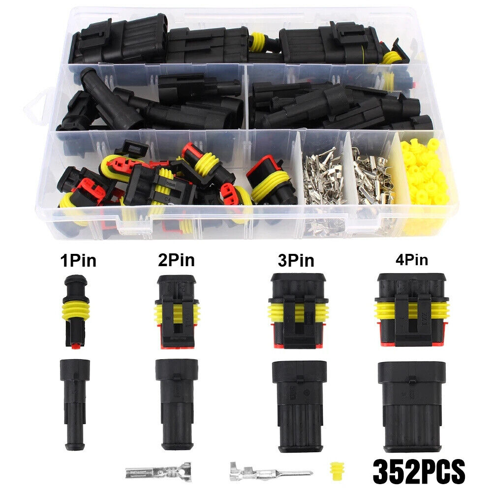 (352Pcs/26Set) 1/2/3/4 Pin Automotive Super sealed waterproof electrical wire connector sets with male & female terminal and silicone rubber cable seal.