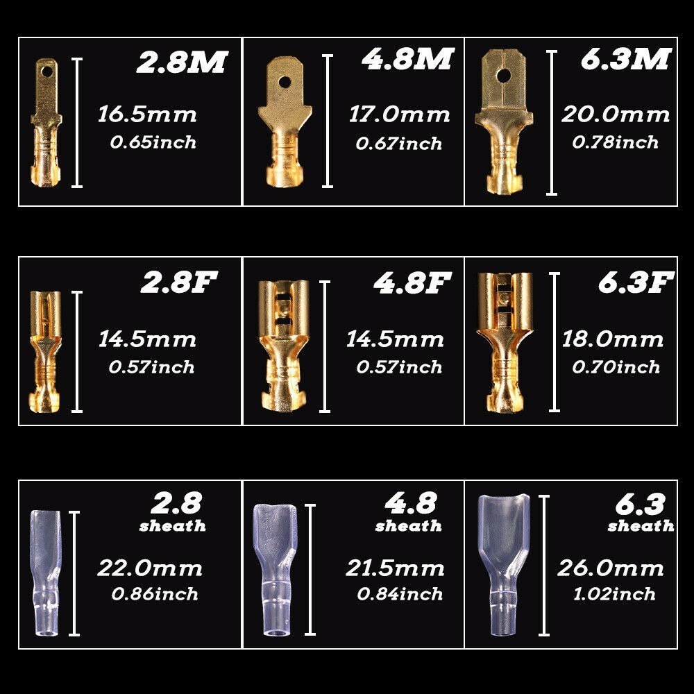 2.8 Type Inner diameter:2.8mm Thickness:0.25mm(male) 0.5mm(female) Compatible wire:0.5-1.5mm²(AWG 22-16)