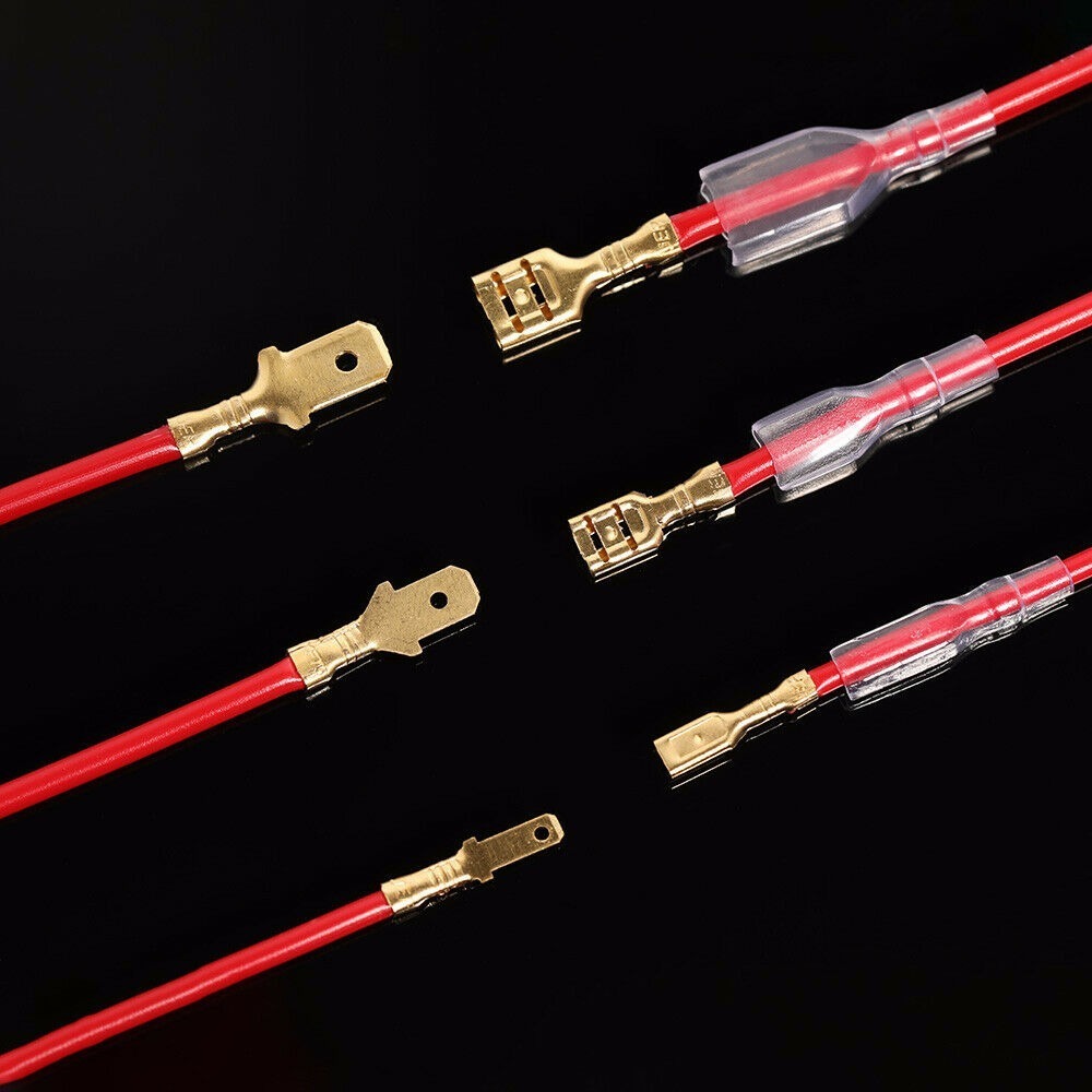6.3 Type Inner diameter:6.3mm Thickness:0.4mm(male) 0.8mm(female) Compatible wire:0.75-2.5mm²(AWG 18-14)