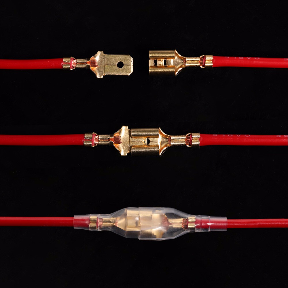 4.8 Type Inner diameter:4.8mm Thickness:0.35mm(male) 0.5mm(female) Compatible wire:0.75-2.5mm²(AWG 18-14)
