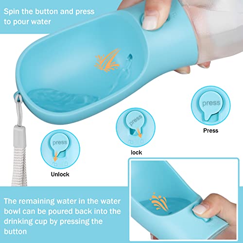 ✔️【Conception Anti-fuite】 Le verrou d’eau à un bouton et l’anneau en caoutchouc d’étanchéité empêchent l’eau de se renverser, ce qui rend cette bouteille d’eau pour chien étanche. Videz l’eau en appuyant sur le bouton et arrêtez-le en le relâchant. L’eau restante peut être renvoyée dans la bouteille en appuyant sur le bouton de l’interrupteur, évitant ainsi le gaspillage