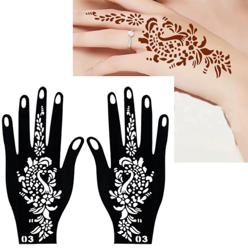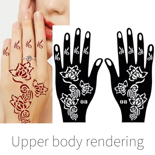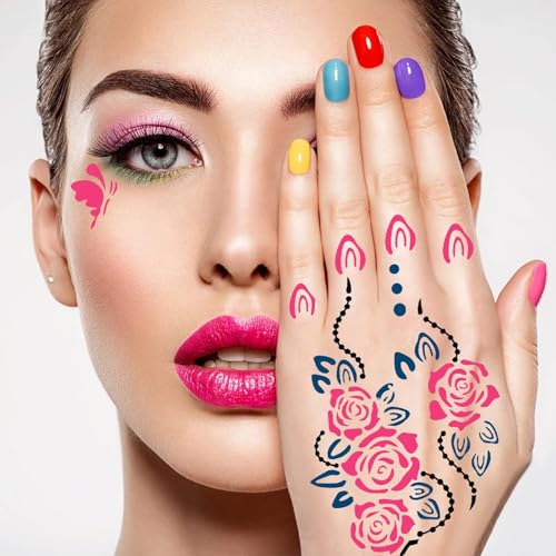Application facile : placez simplement le pochoir sur la zone souhaitée, appliquez du henné ou de la peinture corporelle, et retirez-le soigneusement pour révéler de belles œuvres d’art temporaires