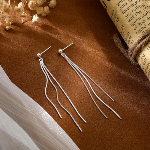 Boucles d'oreilles Pendantes en Argent pour Femmes, Longues chaînes Pendantes Fines, Boucles d'oreilles Tendance hypoallergéniques avec Perles pour Femmes