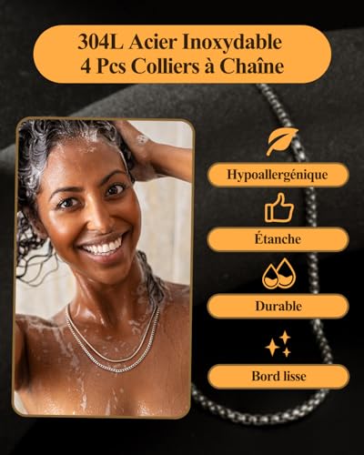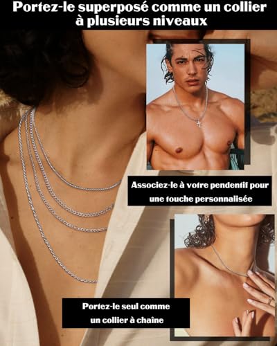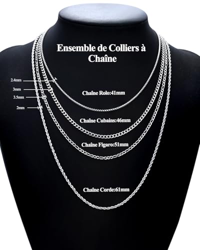CASSIECA 4 PCS Collier en Acier Inoxydable pour Hommes et Femmes - Argent - Chaîne pour Pendentif Cubain - Lien Chaîne Figaro Rolo - Ensemble 46cm
