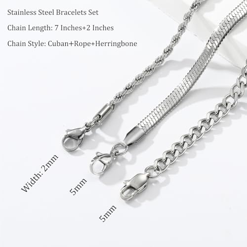 3 pièces en acier inoxydable Bracelet pour hommes Ensemble de bijoux pour hommes Bracelet pour hommes Cadeaux