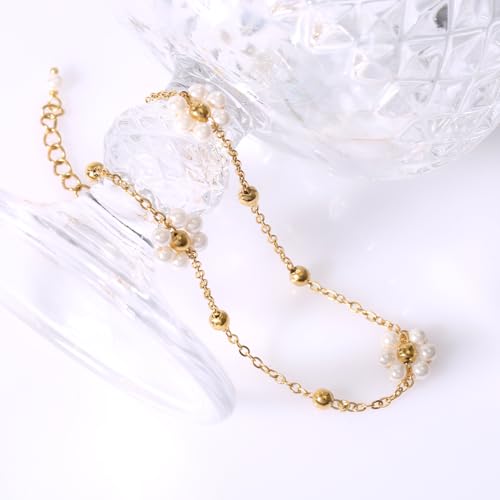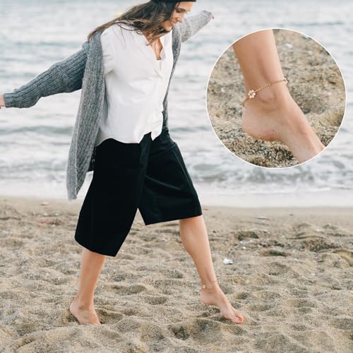 Bracelets de Cheville pour Femmes, Acier Titane Bracelet de Cheville en Perles Bracelets de Cheville Bijoux de Pied Réglables pour Chaîne de Pied d'Été Cadeaux de Bijoux de Cheville
