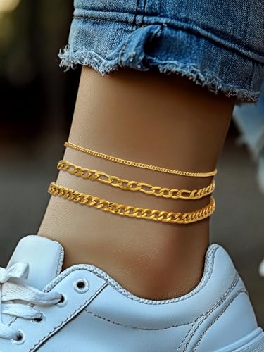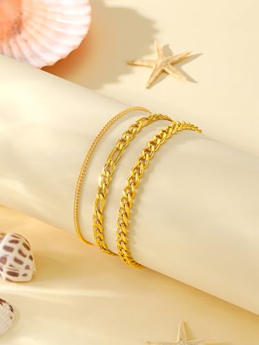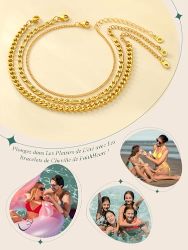 FaithHeart 1/2/3pcs Bracelets Cheville Femme en Acier Inoxydable 316L/Plaqué Or 14K, Chaîne Trombone Élégante de 2/3/6mm, Longueur Ajustable 22+5cm, Style Bohème & Minimaliste