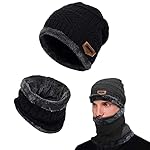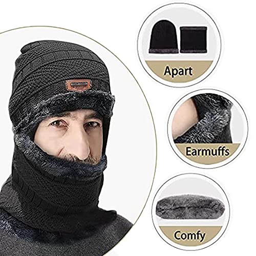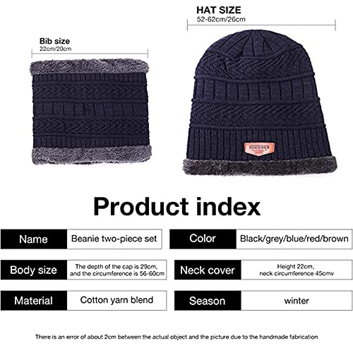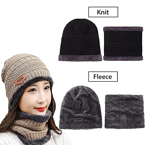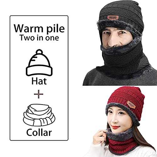 Bonnet Chaud écharpe Ensemble pour Adulte, Bonnet Hat, Tricotés Hiver Bonnet Echarpe, Tour de Cou Doublure Polaire Tricoté nsemble Epais