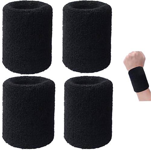 4 Pièces Bracelet Poignet Absorbant de Sport pour Homme & Femme - Serre Poignet Noir pour Gym Tennis Badminton Basketball