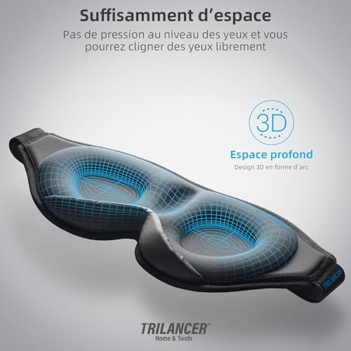 Masque de Nuit Innovant 2025 pour Hommes et Femmes, Conception Masque de Sommeil qui Bloque la Lumière pour Dormir, les Siestes, la Méditation, les Voyages (Noir)