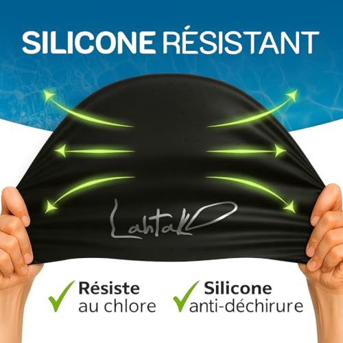 STABILITÉ ET DURABILITÉ SUPPLÉMENTAIRES apportent une GARANTIE PROLONGÉE. Le silicone 100% étanche et hypoallergénique utilisé pour le bonnet de bain Lahtak est le plus épais possible afin d’éviter toute déchirure ou détérioration. Nous sommes fiers de notre qualité et vous offrons une GARANTIE DE REMBOURSEMENT de 90 JOURS. Si vous n’êtes pas entièrement satisfait par votre bonnet de bain, contactez-nous et nous procéderons à un remboursement de votre achat.