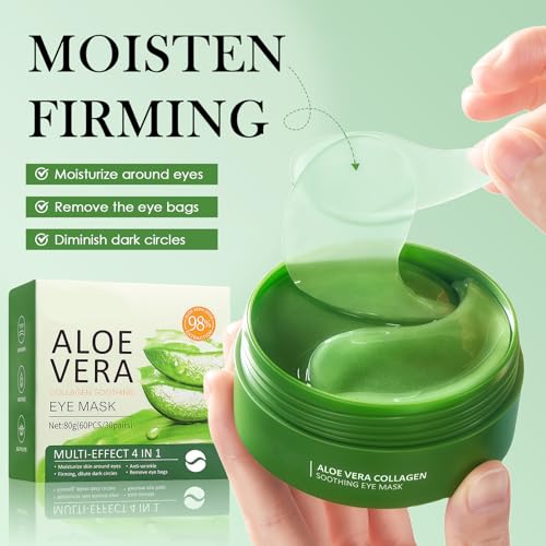 60 Pièces Patch Yeux Anti Cernes, Masque pour les Yeux Aloe Vera, Yeux Éclaircir Les Cernes, Nourrit et lisse le contour des yeux, Réduit les Cernes Sous les Yeux