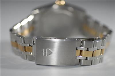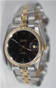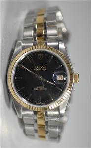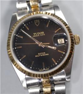 This is a beautiful Tudor Prince Date automatic Solid 18K Gold Bezel Watch & Solid Gold Links with beautiful black Dial ref. 74033 in exceptional condition! The watch hardly shows wear (only minor marks on back cover) and it had been checked & tested to keep excellent time! It will fit up to a 7-1/4 inch wrist. Please look at the pictures carefully to see the exact condition and details.