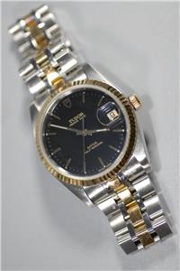 This is a beautiful Tudor Prince Date automatic Solid 18K Gold Bezel Watch & Solid Gold Links with beautiful black Dial ref. 74033 in exceptional condition! The watch hardly shows wear (only minor marks on back cover) and it had been checked & tested to keep excellent time! It will fit up to a 7-1/4 inch wrist. Please look at the pictures carefully to see the exact condition and details. I have a money back return policy if not satisfied so buy with confidence. Free Shipping within the US or $75 (Express Airmail) for other international destinations.