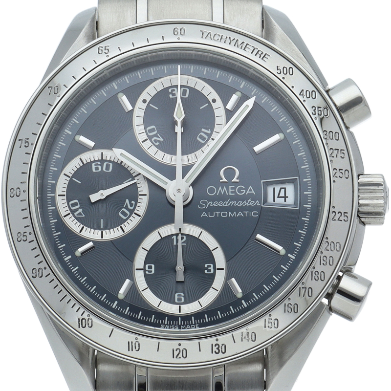 | Omega's flagship model, the Speedmaster. This is a limited edition of the popular Speedmaster Date, limited to 1,000 pieces in Japan. The combination of the blue-gray dial and the silver-edged in-dial is very chic. This is a special limited edition model released in very small numbers for "Japanese Omega fans only." |