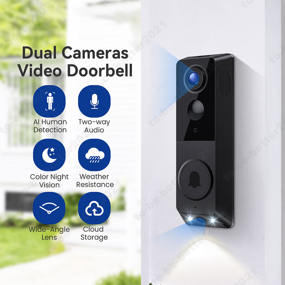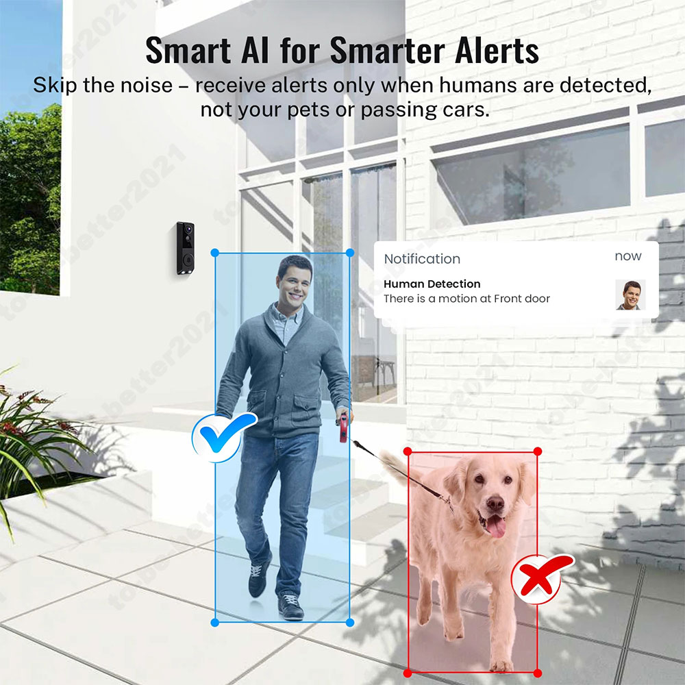 Smart Video Doorbell Camera with Chime, AI Smart Human Detection, Cloud Storage, HD Live Image, 2-Way Audio, Night Vision