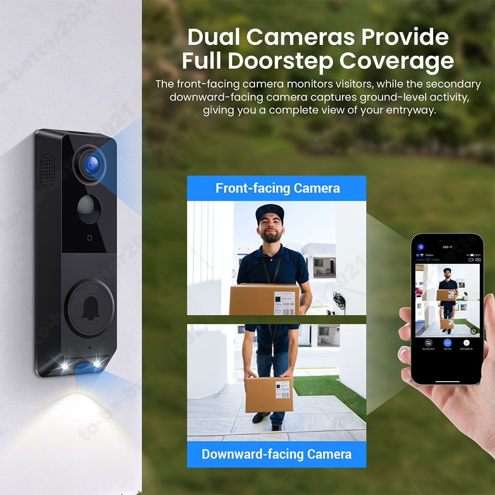 Designed for 2.4G Wi-Fi (5G Wi-Fi not supported), this doorbell camera comes with a free Doorbell Chime to ensure you never miss a visitor, no matter where you are.