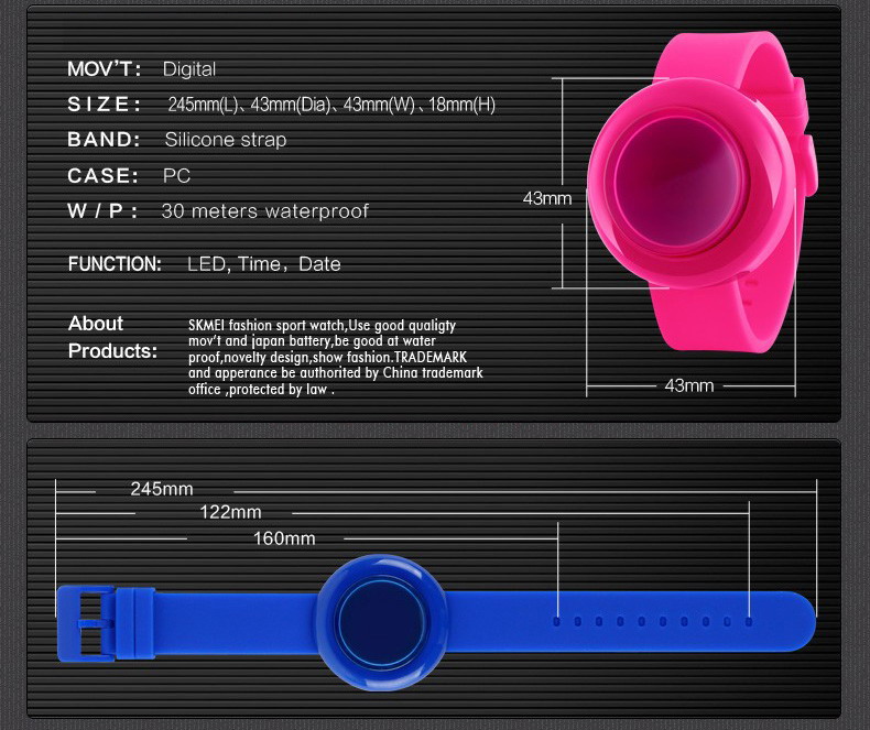 New Designer fashion digital sports watches, LED backlight, 30M water resistant.