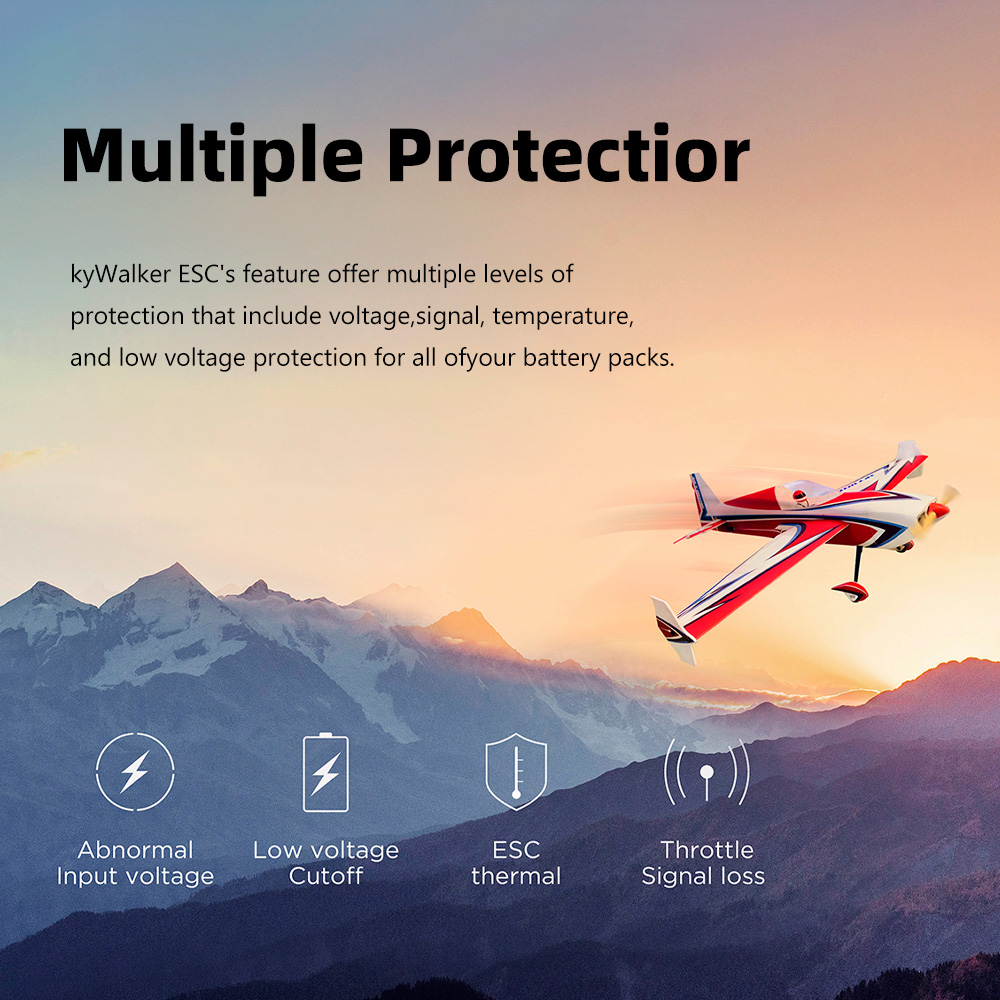 Hobbywing Skywalker 130A 160A V2 Brushless ESC Speed Controller With Reverse Break For RC Fixed Wing Features: 1. High-performance 32-bit ARM MO processor running up to 120 MHz support maximum speed up to 300,000 RPM(2-pole motor)High quality, and reliability. 2. The DEO technology (Driving Efficiency Optimization),Fast and smooth throttle response, better stability and flexibility during flight.Higher driving efficiency, longer flight times.Lower ESC temperature, more reliable operation. 3. Reverse Brake mode enabledcan effectively shorten the landing distance of the aircraft. 4. Search mode can help users find their aircraft by pulsing the motor to beep after the aircraft falls,.This mode can also be used to prompt the user to disconnectthe battery of an ESC that has not been working for a set time to prevent thebattery from running out of power and being damaged. 5. Multiple protection features include abnormal input voltage,ESC thermal, throttle signal loss (or Fail Safe),and low voltage cutoff effectively prolongs the life of the ESC.
