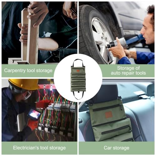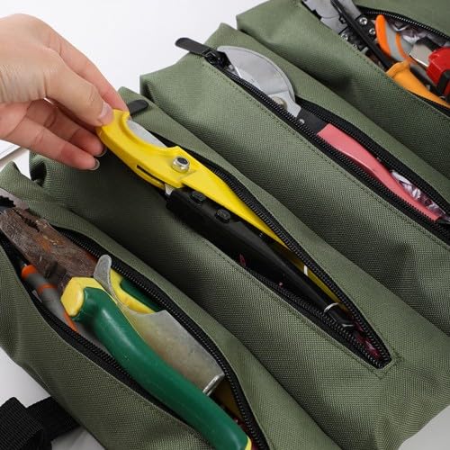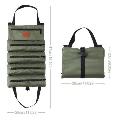 Trousse à Outils enroulable, Sac à Outils Pliable, Organiseur de Rangement Multifonctionnel avec Poches Individuelles, Rangement Organisé, Facile à Transporter, Matériau Déperlant, Vert