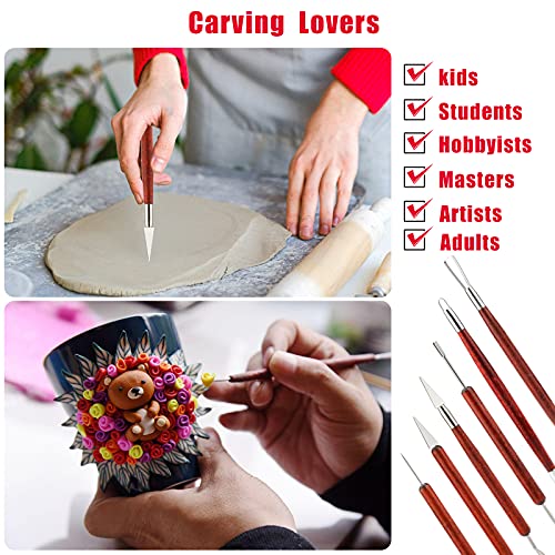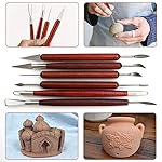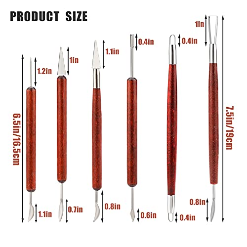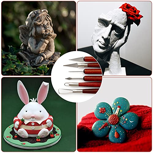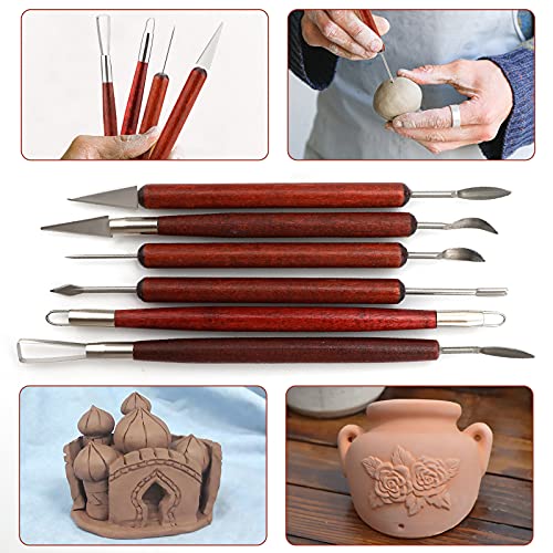 Luter 6 Pièces Ensemble d'Outils de Sculpture en Argile Kit d'Outils de Poterie en Argile avec Poignée en Bois pour l'Argile Poterie Sculpture Céramique l'Artisanat