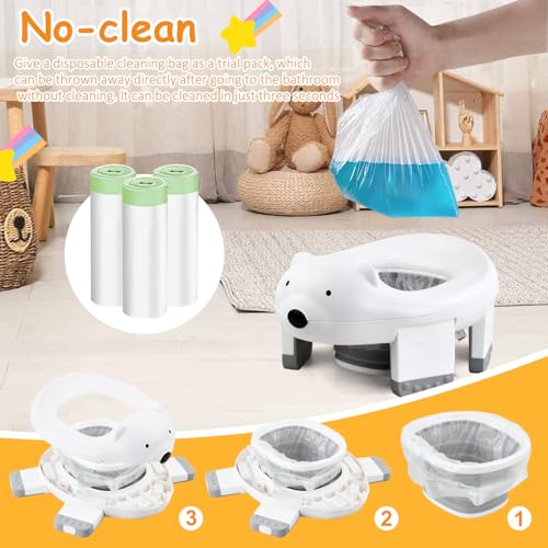 Accessoires inclus : Le siège de toilette pour tout-petits est livré avec 3 rouleaux de sacs à déjections et un sac de rangement. C’est un choix pratique et attrayant pour les jeunes parents.
