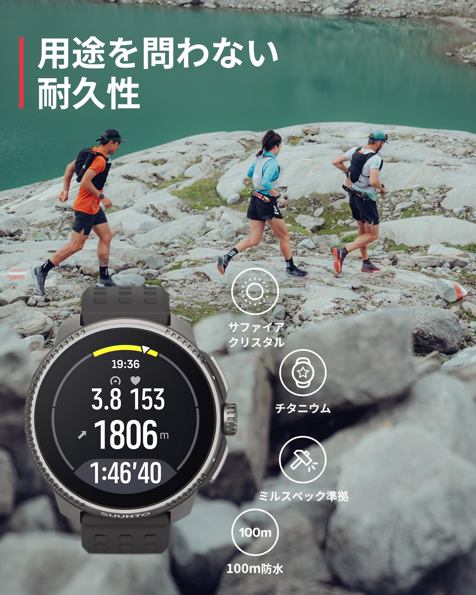 SUUNTO RACE: The ultimate performance watch for racing and training. ■ High-resolution AMOLED screen & durable: The crisp 1.43-inch (466x466) touchscreen ensures reliable readability, even in fast-moving situations and sunlight. Suunto Race is military-grade tested, making it ideal for the most demanding conditions. ■ Over 95 sport modes: SUUNTO RACE offers over 95 sport modes, including running and swimming, so you can find the perfect fit for your sport. (Key features: Heart rate variability (HRV), blood oxygen level, heart rate, sleep, calories burned, pedometer (linked with app), speed and distance, barometric altimeter, weather forecast, 100m water resistance, snorkeling depth meter) ■ [Advanced training metrics & reliable companion for a healthy lifestyle]: Outdoor offline maps (free) and support for five satellite positioning systems (GPS, GLONASS, GALILEO, QZSS, BEIDOU) provide more accurate location information and tracking. Additionally, the Suunto app helps you manage your daily activities, sports, adventures, and diving. The home screen display makes it easy to track key activities. ■ [Up to 26 days of battery life]: The bright AMOLED display maintains excellent battery life. Select Performance battery mode for up to 40 days of continuous training, or select Tour mode for up to 5 days of continuous use if you want to add GPS tracking time. (26 days of daily use, 12 days of 24-hour tracking and mobile notifications, 40 hours / 50 hours / 70 hours / 120 hours of GPS training mode) ■ [Package contents]: Suunto Race (TITANIUM CHARCOAL) *1, charging cable *1, quick start guide *1 (2-year manufacturer's warranty) (*Bezel material: Grade 5 titanium, glass material: sapphire crystal, case material: glass fiber reinforced polyamide, strap material: silicone)