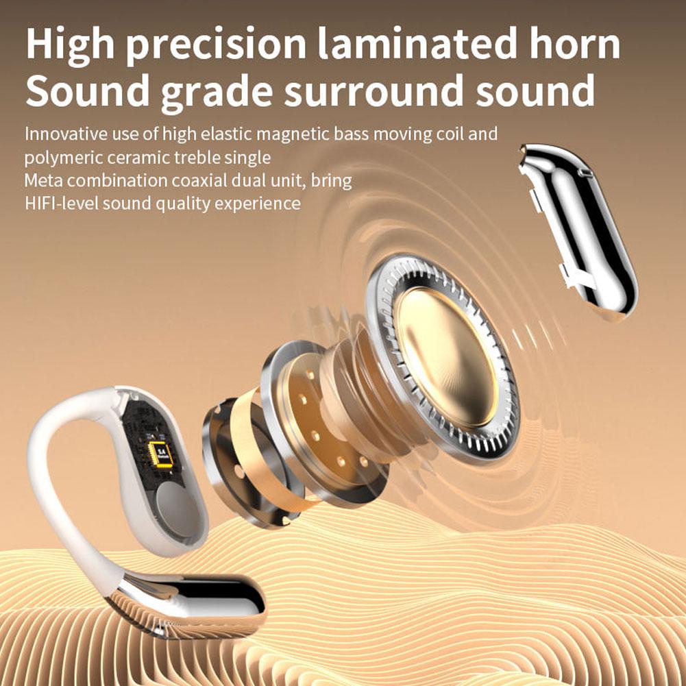 2. Immersive Hi-Fi Spatial Sound: Hi-Fi sound quality and a realistic spatial sound field immerse you in a live listening experience. Our innovative high-precision technology employs a layered horn design, equipped with a high-elasticity dynamic bass driver and a polymer ceramic tweeter coaxial dual unit, delivering pure sound quality. The new 360° panoramic stereo effect, using immersive atmosphere conduction technology, simulates an immersive surround sound environment, enhancing your audio experience.