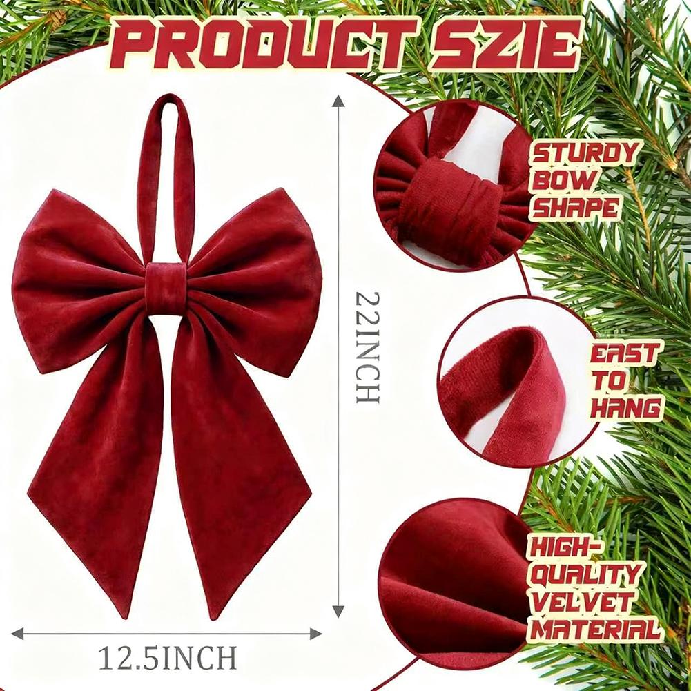 1. Make a bold festive statement with this 22-inch giant burgundy velvet bow, designed to stand out as a luxurious Christmas tree topper or eye-catching room decoration. Its generous size and rich color create an elegant focal point for holiday displays, birthday backdrops, or wedding decor.