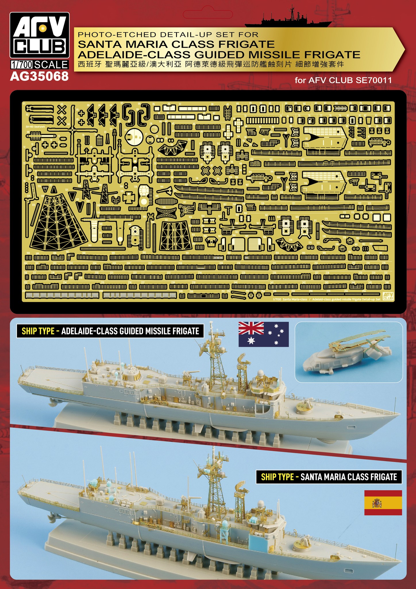 AFV Club AG35068 1/700 PHOTO-ETCHED DETAIL-UP SET FOR Santa Maria Class Frigate
