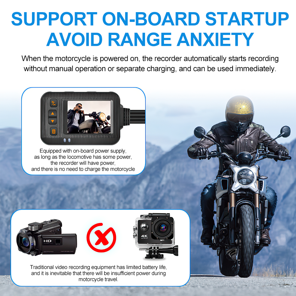 High Definition: The motorcycle dash cam is designed with 1080p high definition and dual-lens, which can bring you a wide angle vision.