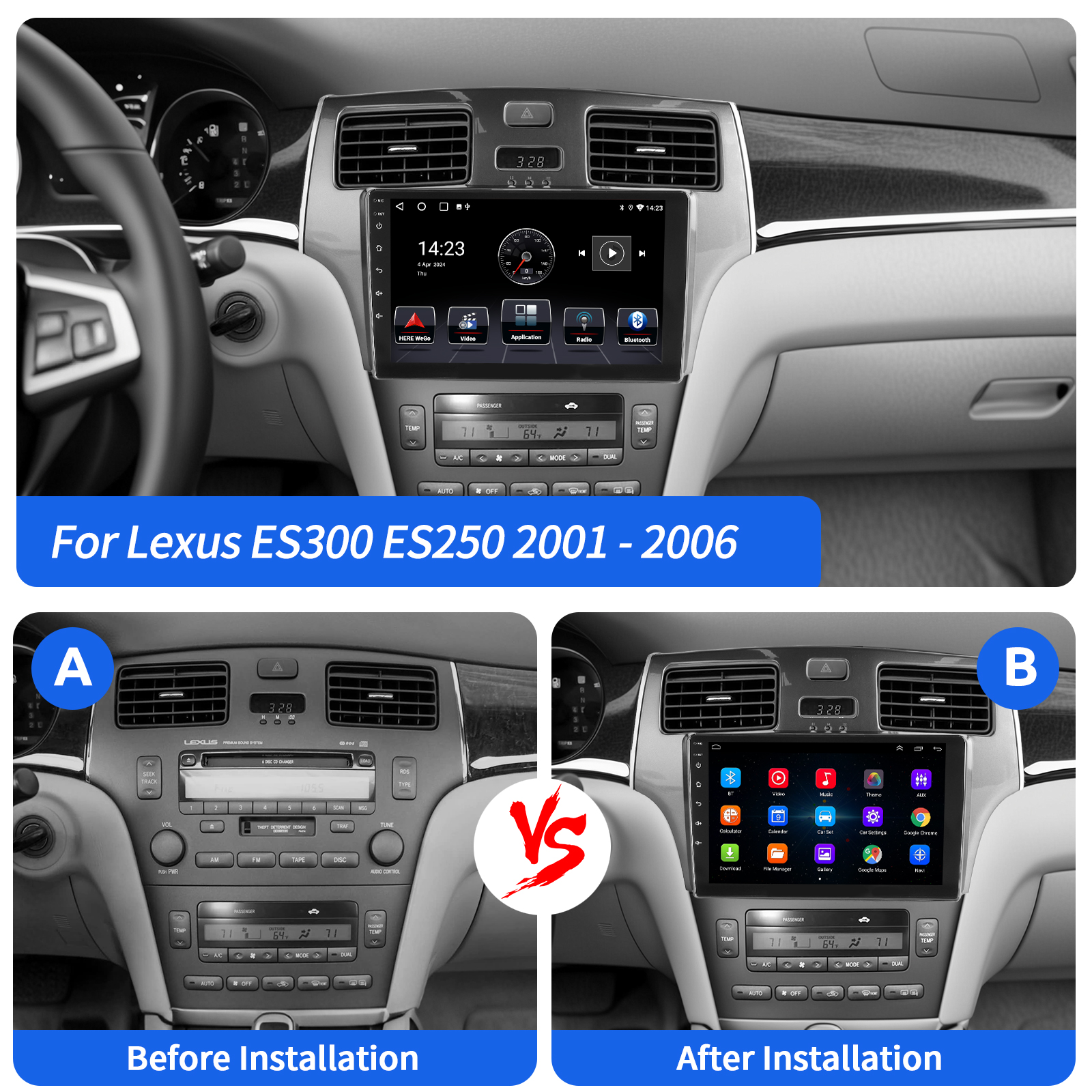 9 Inch Android 15 Car Radio for Lexus ES250 ES300 ES330 2001-2006: The Android car radio with 9" 1280* 720 HD capacitive touchscreen, 4GB RAM and 64GB ROM allows you to download your favorite apps and videos, so driving is no longer boring. No extra frame, no cable change, plug and play.