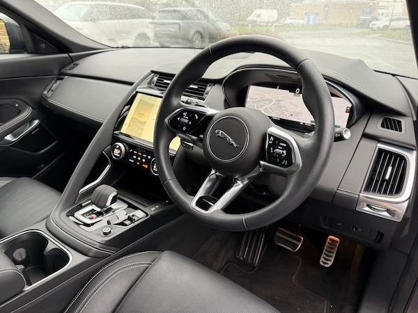 **12 MONTHS JLR MANUFACTURERS' WARRANTY AND FULL JAGUAR SERVICE HISTORY**, PANORAMIC SUNROOF, REAR CAMERA, PRIVACY GLASS, 19'' ALLOY WHEELS, BLACK PACK, ISOFIX, HEATED FRONT WINDSCREEN **FOR THOSE WINTER MORNINGS**, SAT NAV, DAB, DRIVERS MEMORY SEATM, HEATED FRONT SEATS, MERIDIAN SOUND SYSTEM, CABIN LIGHTING, ADAPTIVE CRUISE CONTROL, KEYLESS ENTRY AND PUSH BUTTON START, 4WD - ALL WHEEL DRIVE, SECURE TRACKER **SUBSCRIPTION REQUIRED**, AIR QUALITY SENSING, LUMBAR SUPPORT, APPLE CARPLAY, ANDROID AUTO - HARWOODS JAGUAR BASINGSTOKE are delighted to offer this luxurious Jaguar E-Pace 2.0 D204 MHEV R-Dynamic SE Black SUV 5dr Diesel Auto AWD Euro 6 (s/s) (204 ps)- Be assured all approved Jaguars are offered with a minimum 12 months Jaguar approved warranty and European roadside assistance. Our Jaguar Technicians carry out a 169-point check on every vehicle, as well as independent mileage and history checks.*** We are proud to be part of the Harwoods group, a family-run business established in 1931** With 3 Approved Jaguar retailers within our group, we have access to over 500 vehicles. If this isn't the right car for you our Group stock has specification to include Sunroof, Leather, Heated Seats, Apple Car Play, Heated Steering Wheel, Reverse Camera, Rear Entertainment, Towbar, 360-degree camera, Meridian Audio, Panoramic Sun Roof, Tow Bar, Black Pack, Air Suspension, Apple Carplay, Adaptive Cruise, Massage Seats, Refrigerator, AWD, Head up Display, Portfolio, Autobiography, SVR, R Dynamic, R Sport, Sportbrake, Convertible, Coupe, V8, LWB. Other colour options including Black, Blue, Green, Silver, White, Red, Grey & SVO