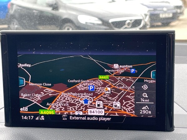 ..Driver Convenience,Audi Drive Select,Cruise Control,DIS - Drivers Information System - Monochrome,Rear Parking Sensors,Tyre Pressure Warning Light,Voice Control SystemEntertainment,2 x SDXC Card Readers,2 x USB Charging Ports and 1 x AUX-IN,8 Passive Speakers,AMI - Audi Music Interface,Audi Connect Infotainment Services - 3 Month Trial,Audi Smartphone Interface,Bluetooth Interface,CD Drive,DAB Digital Radio,MMI Navigation - SD Card Based,MMI Radio Plus with 7in Colour Fixed MMI Screen and MMI ControllerExterior,18in Alloy Wheels - 5-Spoke Y Design,Anti Theft Locking Wheel Bolts,Black Window Trims,Body Coloured Bumpers,Body Coloured Door Mirrors,C-Pillar Blade in Titanium Grey - Matt,Chrome-Plated Exhaust Tailpipe Trim,Door Mirrors - Electrically Adjustable and Heated with Integrated LED Side Indicators,Electric Windows - Front,Front Windscreen with Grey Tinted Sunband,S Line Badges on the Front Wings,S Line Design Body Styling,Tyre Repair KitInterior,3-Spoke Leather Trimmed Multi-Function Sport Steering Wheel,Aluminium Interior Elements,Cloth Headlining in Black,Email - Calendar and Text Messages can be Displayed on your Vehicles MMI,Floor Mats with Contrast Stitching,Front Centre Armrest,Head Restraints - Rear x3,Illuminated Door Sill Trims with S Logo,Inlays - Matt Brushed Aluminium,LED Interior Light Package,Manual Air Conditioning,Manual Seat Adjustment,Non-Smoking Package,Pedals in Stainless Steel,Split Folding Rear Seat Bench - 60-40 or Fully,Steering Wheel - Height and Reach Adjustable,Storage Compartments,Tool Kit and Car JackEntertainment,2 x SDXC Card Readers,2 x USB Charging Ports and 1 x AUX-IN,8 Passive Speakers,AMI - Audi Music Interface,Audi Connect Infotainment Services - 3 Month Trial,Audi Smartphone Interface,Bluetooth Interface,CD Drive,DAB Digital Radio,MMI Navigation - SD Card Based,MMI Radio Plus with 7in Colour Fixed MMI Screen and MMI Controller