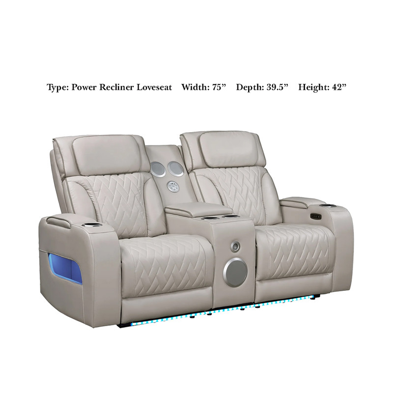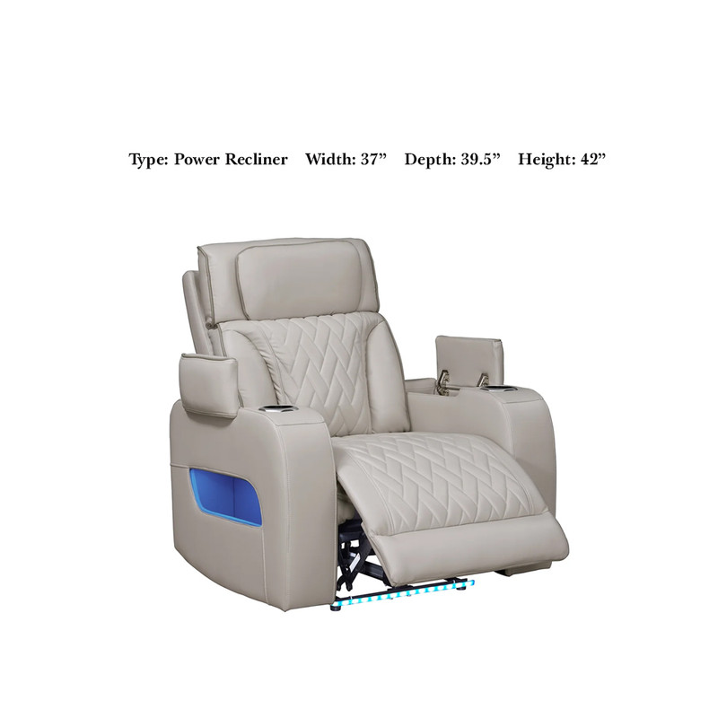 Elevate Your Comfort with our luxury Beige Gray Power Recliner Set featuring contoured cushioning for lumbar support and elegant herringbone stitching for high-end style. Breathable and durable beige air leather upholstery gives this set a casual and cozy feel.
