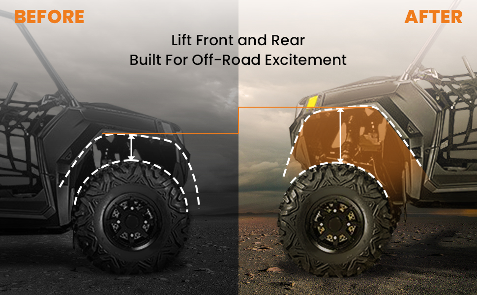 Give extra clearance and allow you to further upgrade your machine with larger tires and rims