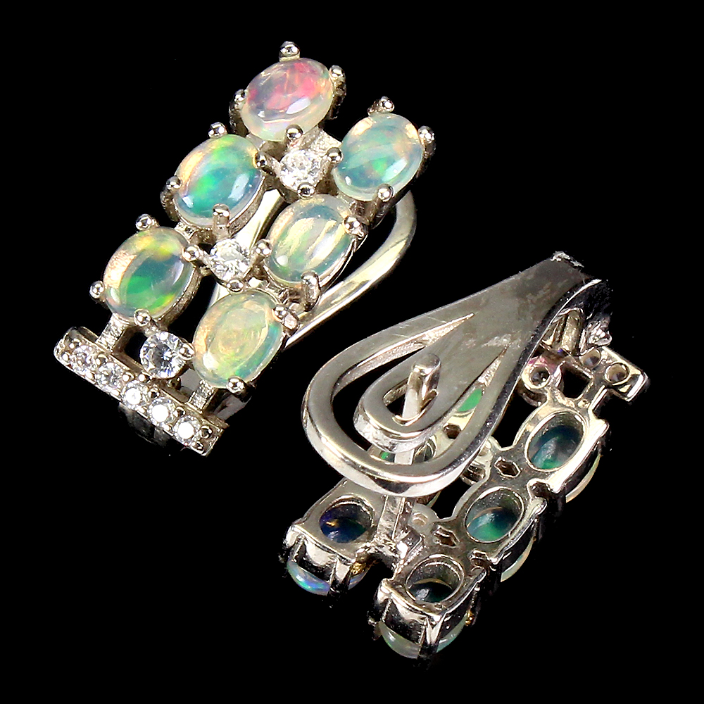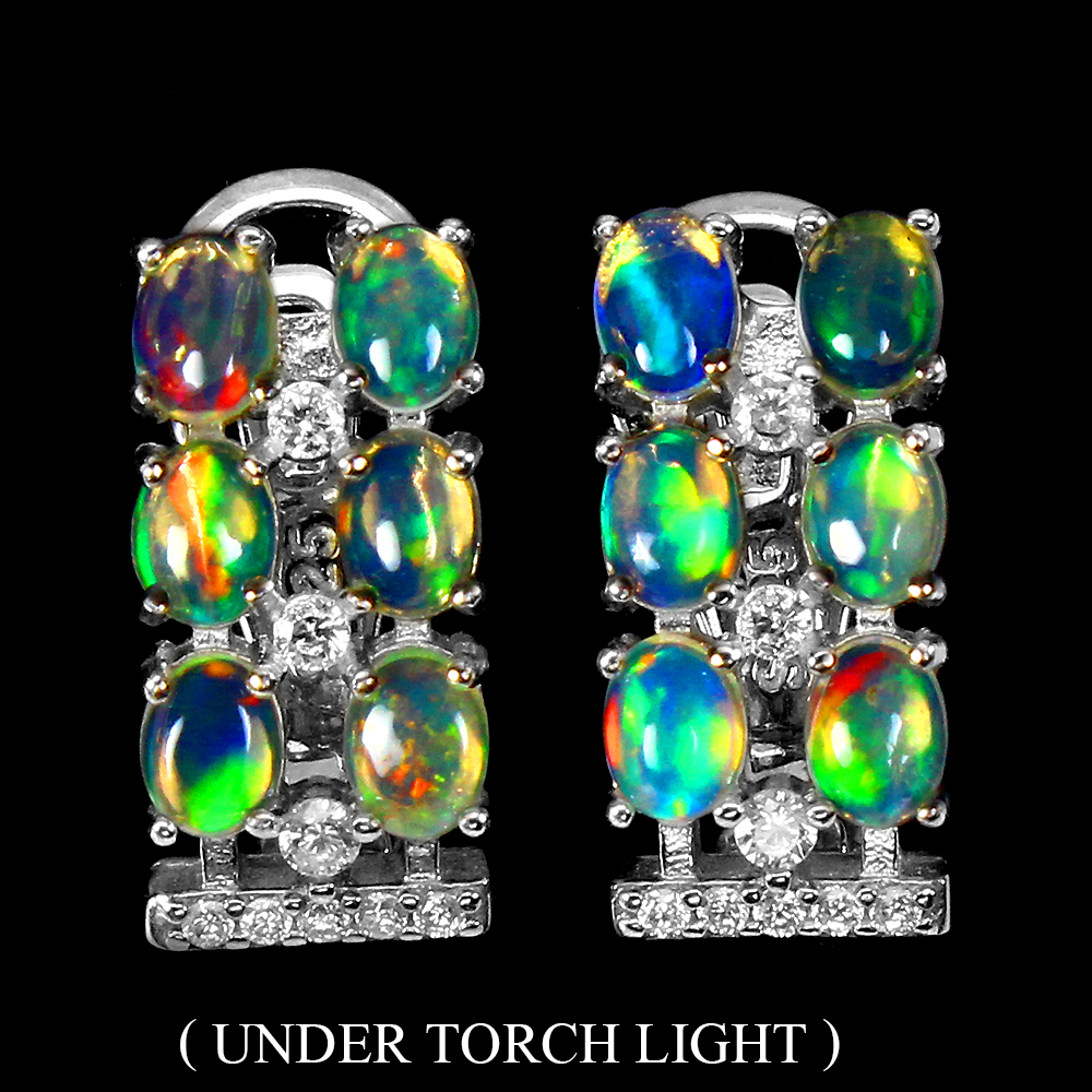 Unheated Oval Fire Opal Rainbow Full Flash 4x3mm Cz 925 Sterling Silver Earrings