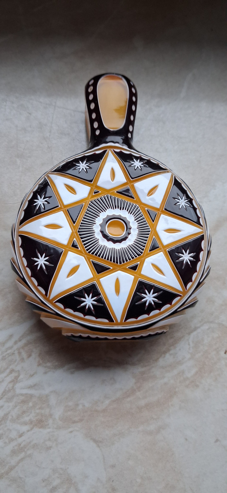 Tolle Schnupftabak Flasche Bixl Glas Flakon Schwarz, Weiß ,Orange, Sternmuster, Überfangdekor