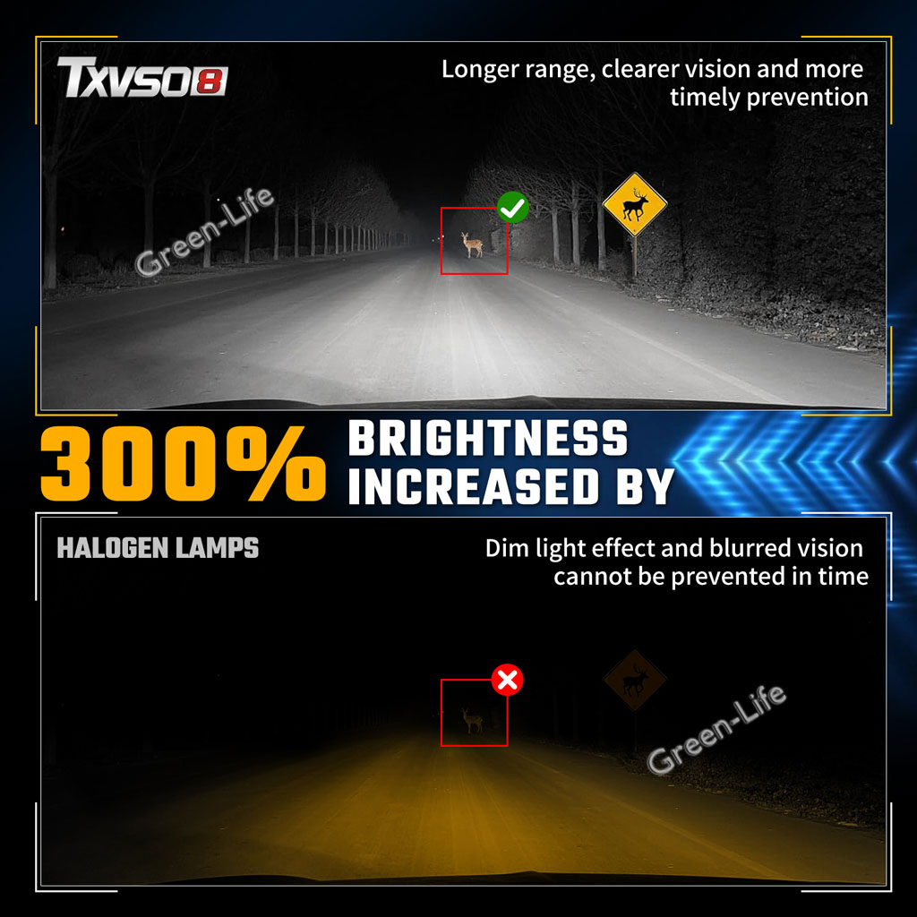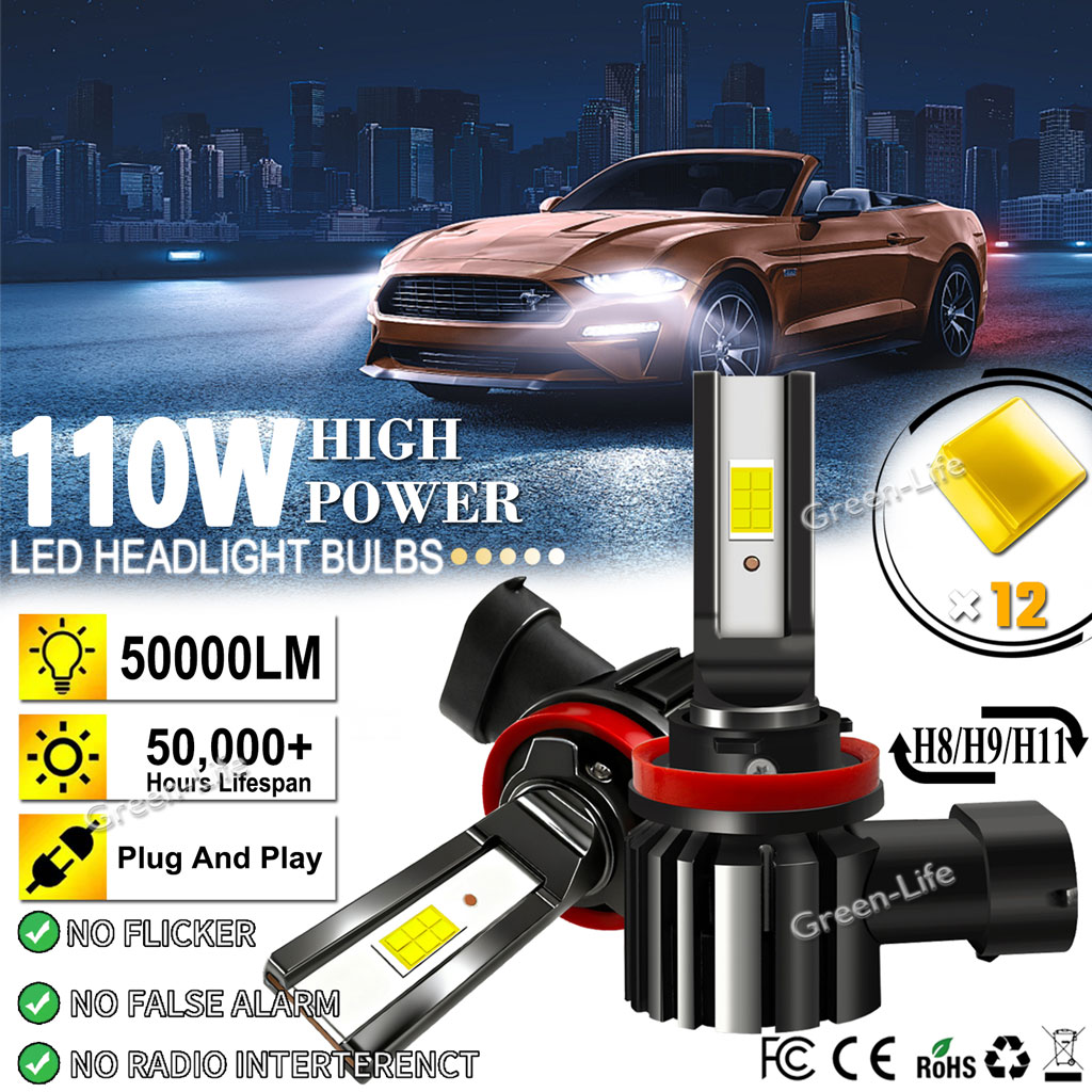H8 or H9 or H11 bulb for fog adopt 3570 CSP Chips,110W 40000LM efficient lighting output. Providing wider and farther lighting range. Helping you see the road markings, obstacles, and other vehicles more clearly in driving.