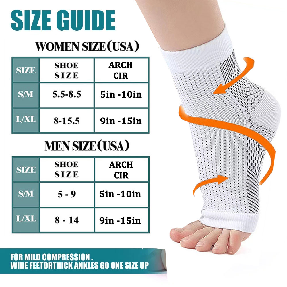 2. Specially designed to increase blood circulation and reduce swelling. 3. Symptoms of plantar fasciitis combats, quick and convenient to wear. 4. Unisex and fits either foot, unvisible under clothing. 5. Open toe design, soothes and relieves achy heels and feet. 6. Help maintain a comfortable temperature, discharge sweat. 7. Highly comfortable Breathable, with Quick-dry Function. 8. Free & fast shipping, high quality product & great service. 9. Perfect compression sleeve for travel, fitness, work, outdoor and indoor sports.
