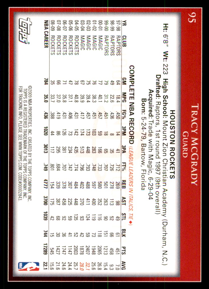 | 2009-10 Topps Tracy McGrady Basketball Cards #95 |