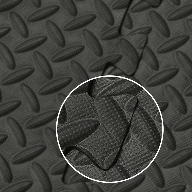 These mats features with anti-slip surface, water repellent, sound absorbing, skin friendly, highly compressed, environmentally friendly, easy to store, easy to clean and non-toxic EVA foam are perfect as floor layering for fitness and gym spaces, under sports equipment, in children rooms, work spaces, garages, basements and much more. Due to the ease of storage, set up and dismantling they can be used as a temporary feature. Ideal to protect your floor from scratches, knocks, dents, cold, noise, sweat and other fluids with probably the best and most secure protective floor mats. Each tile have two edges