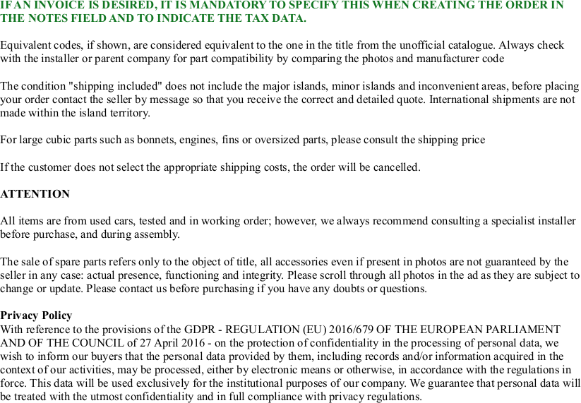 Vuoi che ci assicuriamo che questa parte sia adatta al tuo veicolo? Possiamo verificarlo! Tutto quello che devi fare è inviarci una foto della scheda tecnica e/o il riferimento del tuo pezzo.