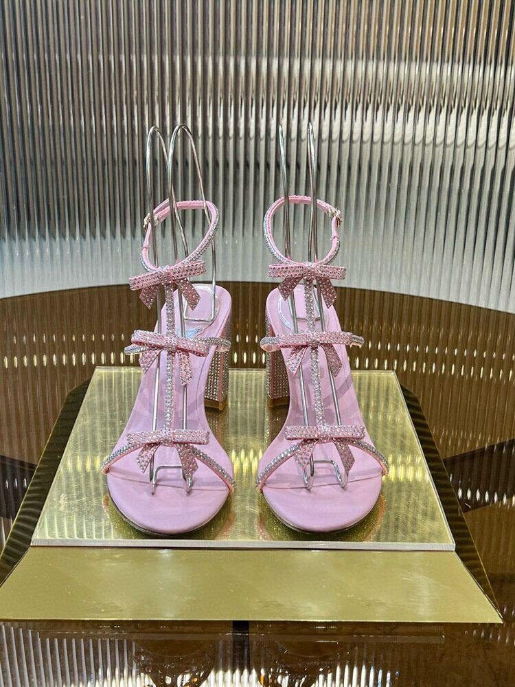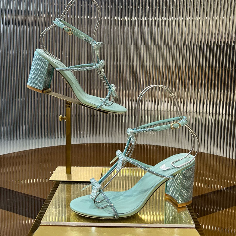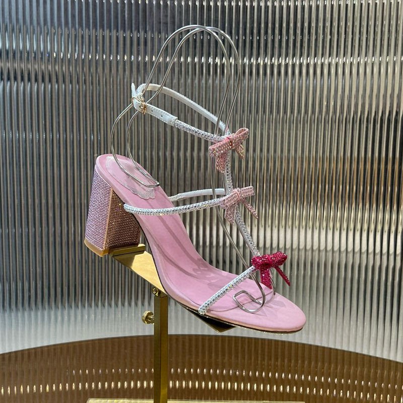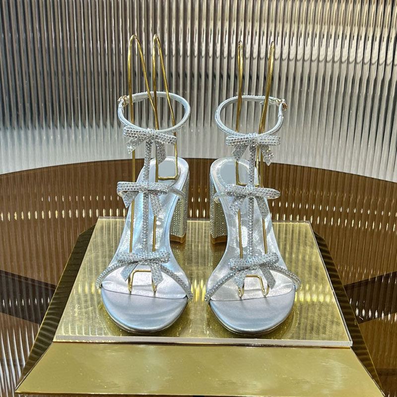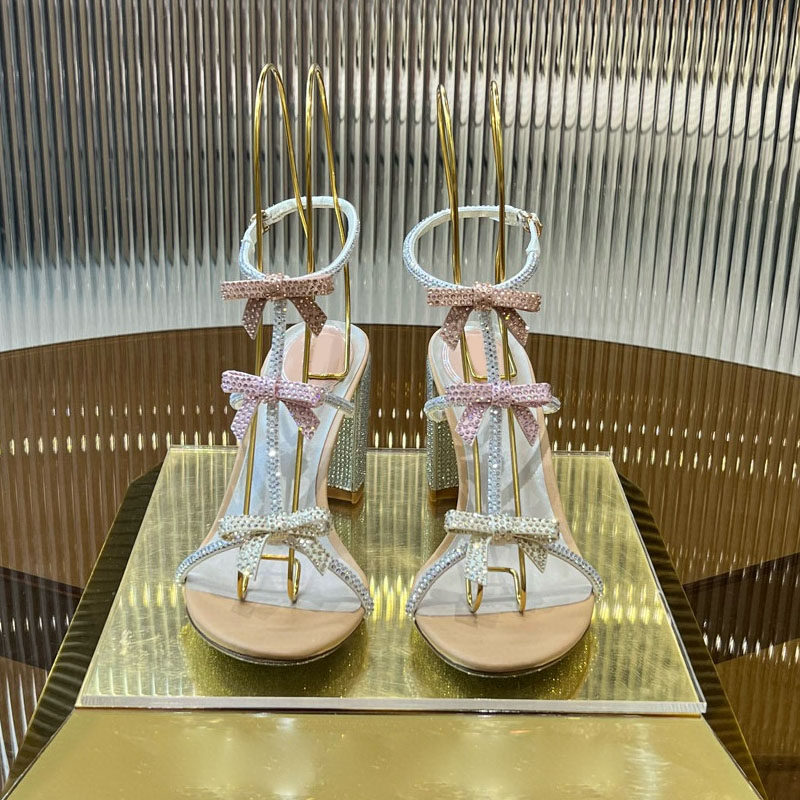 Womens Round Toes Bow High Heel Sandals Crystal Shoes Thick Heel Wedding Shoes