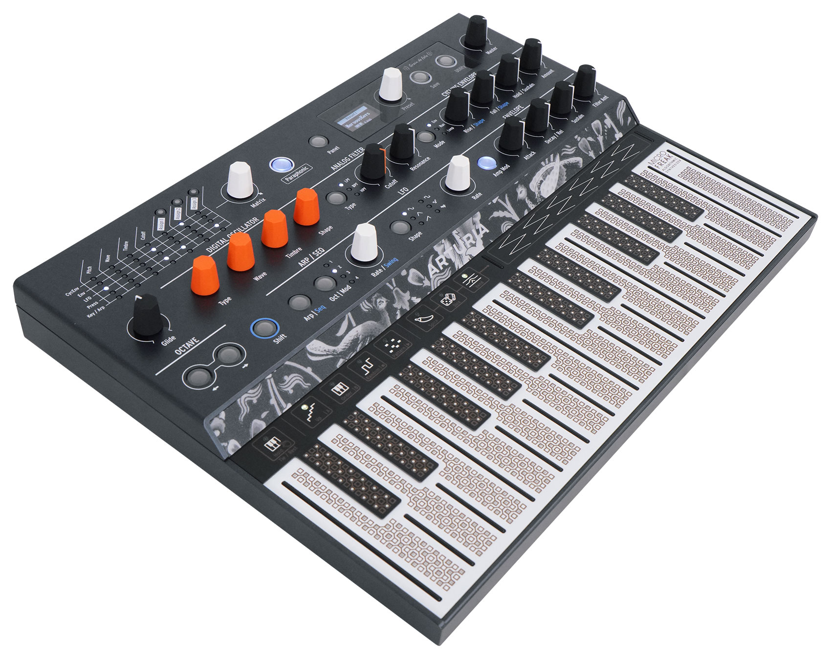 The 25-key printed circuit board not only track the notes you play with lightning-speed, but can also detect pressure or aftertouch on each note individually. This has some exciting applications within MicroFreak itself, but also for polyphonic aftertouch-enabled virtual instruments when MicroFreak is used as a MIDI controller.