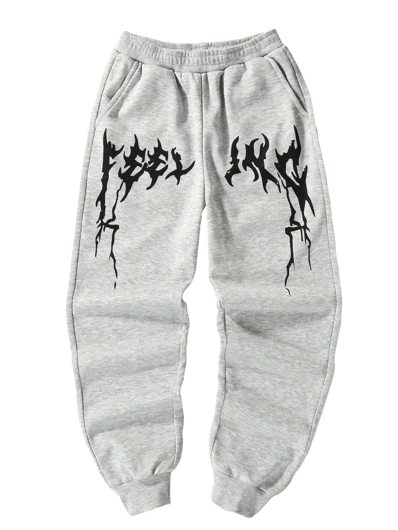 - Features: Graphic print, elastic waist, slant pockets, tapered leg.
